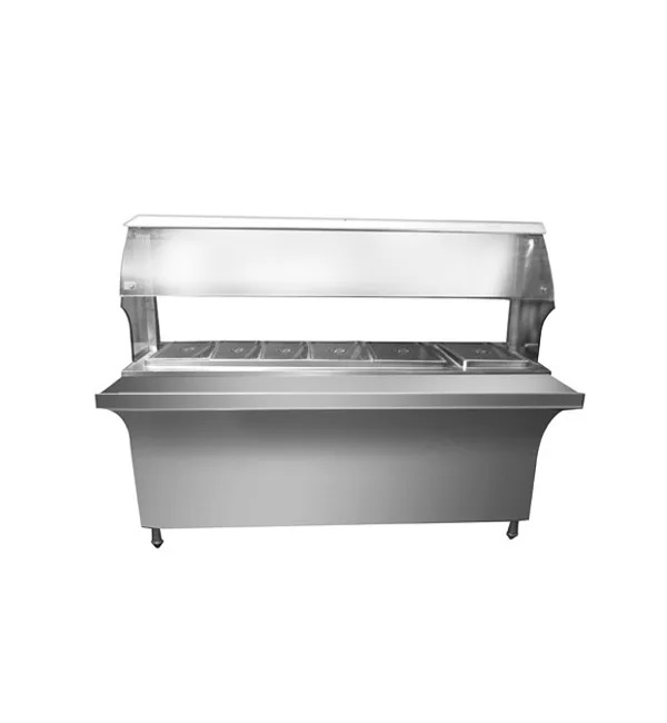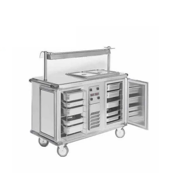 The service section in a commercial kitchen is dedicated to the final preparation and delivery of dishes to customers. This area includes essential equipment such as heat lamps, warming trays, pass-through windows, and serving counters. It is designed to keep food at the right temperature, ensure timely delivery, and maintain the quality of dishes from the kitchen to the dining area. Efficient service sections help streamline the workflow, facilitate communication between kitchen staff and servers, and enhance the overall dining experience by ensuring that meals are served promptly and at the correct temperature.